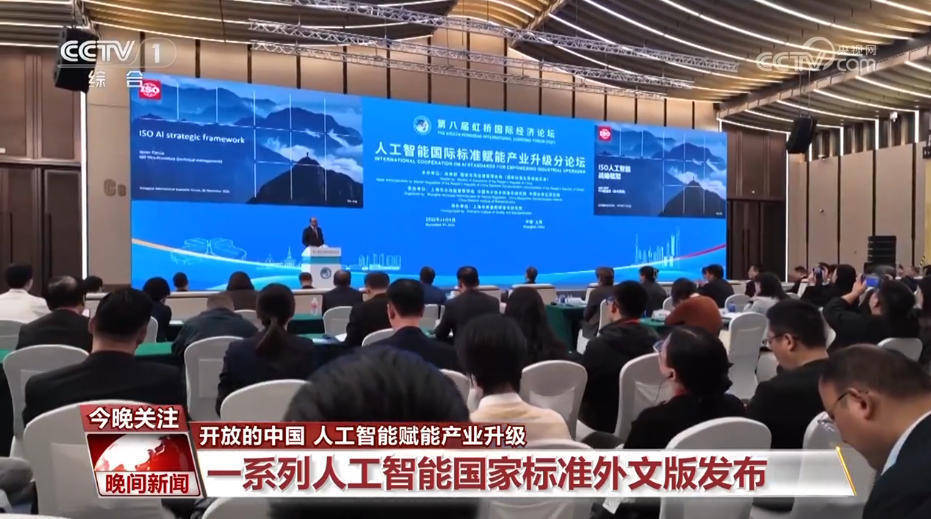 本届进博会上,人工智能备受关注。在虹桥论坛“人工智能国际标准赋能产业升级”分论坛上,《人工智能 大模型》等国家标准外文版正式发布。同时,还发出了人工智能标准国际合作倡议。