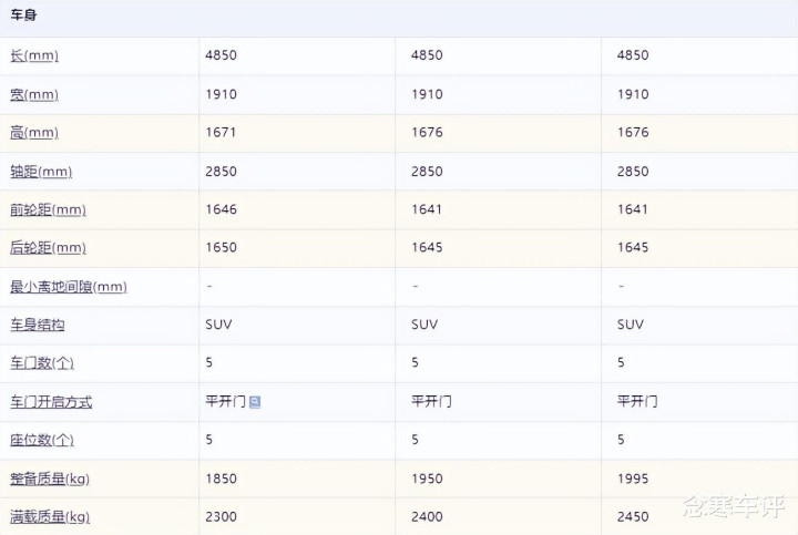 尺寸方面,长宽高4850/1910/1676mm,轴距2850mm。